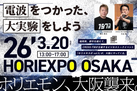 スピーカー:株式会社CROSS FM 代表取締役会長 堀江貴文、代表取締役社長 大出整