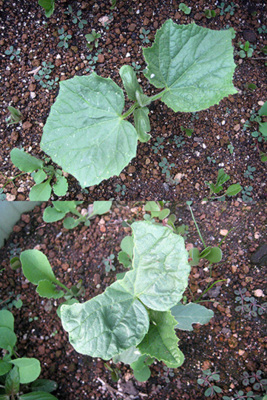 そんなキュウリと同じ鉢内でひそかに、っつうか、かなり目立ちめに出てきているのが
