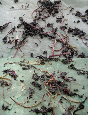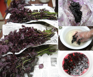 無農薬の、コレまた貴重な赤紫蘇も使って下処理。