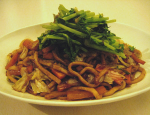 天空で育った玉ねぎ、ニンニクを使った焼きうどん。