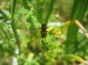 ミツバチの数も増えたけど、ヒラタアブの数も増えた気がする。