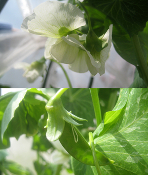 天空のエンドウ(まだグリーンピースは出来ていない)。