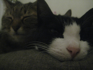 長老アズキさんは、2頭のカラダの間に顔をうずめ、例えるならw、仙人レベルの悟りの寝顔w