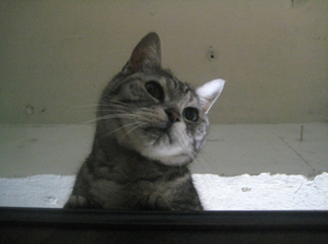 猫のお気に入りの場所のヒトツがタオルの棚、だの、