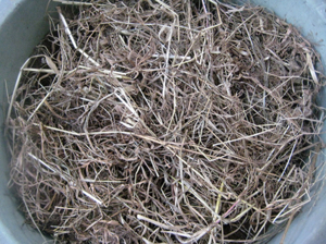 土をかぶせたのち、土のうえには、気持ち程度ですが、藁の代わりに枯れた草を置いてますw