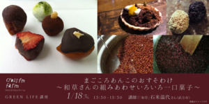 【キャンセル発生につき1名受付】グリーンライフ講座「まごころあんこのおすそわけ~和草さんの組みあわせいろいろ一口菓子~」