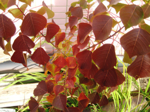 不思議な所から、不思議な赤い葉、育ってます。