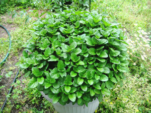 鉢植えミントからはみ出して、