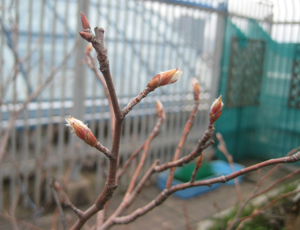 桑の木の葉の芽が出てきた。