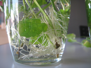 水に挿し木中のミント。