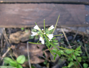 白い花は、タネツケバナです。