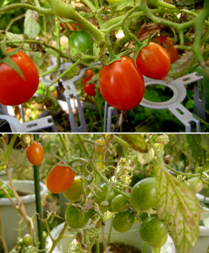 ミニトマト・あいこは、葉が枯れッ枯れ。
