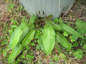 指さしてた先は、ええ、2枚目の写真です。はい。鉢の底から。同じ葉。。。