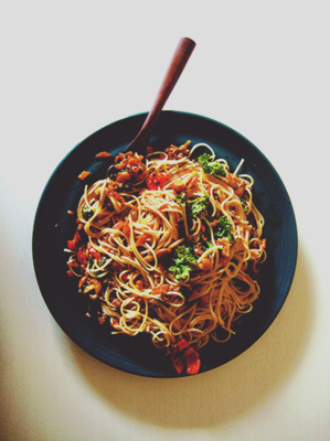 ミートソーススパゲッティ、作りました。
