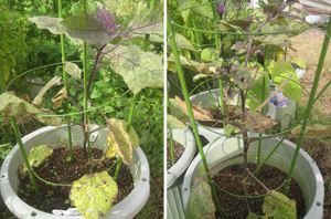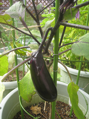 少しずつ少しずつですが、伸びてますねえ。ナスの実。
