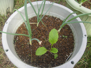 間引きして、ホーム玉ねぎの鉢に入れた子も生長中。