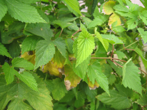天空のホップは、葉が黄色になってきている箇所を発見。