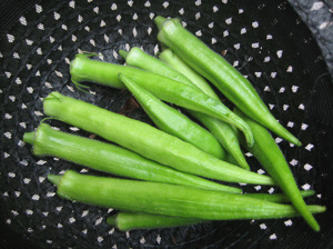 ぼ〜ぼ〜うぶげと、ぼ〜うし(帽子)をかぶった、オクラ〜。