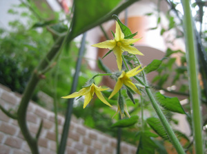 ぼ〜ぼ〜産毛のミニトマト〜の花〜。