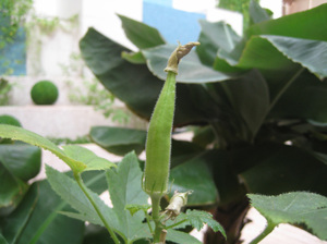 室内栽培のオクラ。