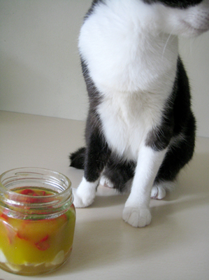 あ、そういえば、先日仕込んだニンニクの酢漬けは、どんな具合かなあ???