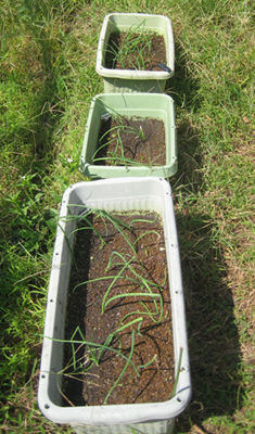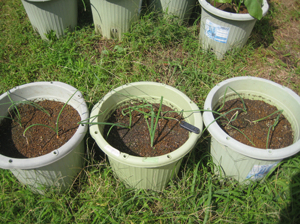 土の違いによる差は出てません。玉ねぎは皆同じように芽が出て、