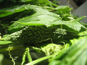 そして今頃ですが、人工受粉で結実した室内ゴーヤも生長中です。