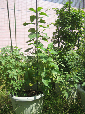 ナスは葉の色に若干違いがあるかな?土のせいか、元々の個性かは不明ですが。