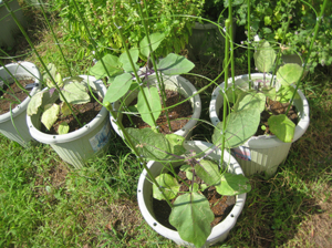 先日植えた玉ねぎ、秋ナス。色んな条件の土で育ててますが、今のところ、