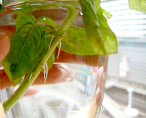 室内バジルを剪定したので、水に浸けてまた白い根を付けさせている途中です。