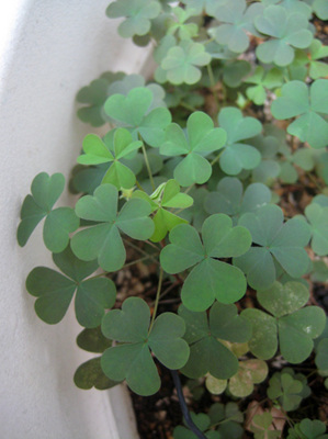 木陰に置いてる鉢は、葉が大きく柔らかそうで、背はまだ低く、
