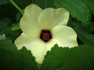 オクラの花は、小ぶりで、あまり主張しない感じで、ひっそり咲いています。