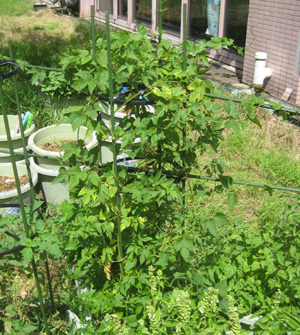 同居は、ミニトマトと判明しましたが、もうすでに、多くの花を咲かせ始めています。