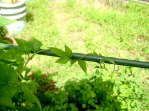 とにかく、人工で巻き付かせても、強風のせいかホップの自己主張か、