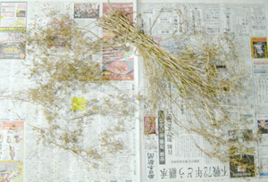 あんなにこんもり置いていた、枯れパクチーの種付き。