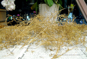 以前から乾燥させている種付きパクチー達が控えし、
