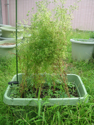 生長したパクチーさんに花咲いてもらいまして、