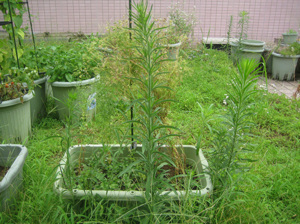 皆、背が高くなってきています。ミントとバジルは花がつき始め、