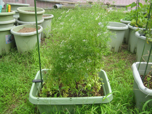 大人になって花を咲かせたパクチーは、今はお花畑状態。