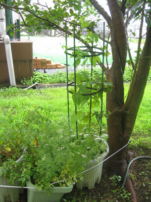 sp役のハーブたちも大活躍中。実のなる鉢の間間に配置されておりやす。