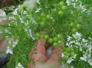 なんと!やったぬ(ね)〜!パクチーに種が付いたようです!