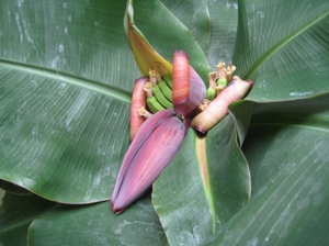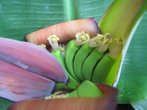 モンキーバナナ親子(大:父、実が付いてる:母、わき芽双子:子)、