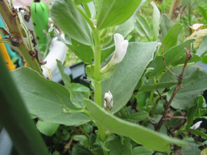 空豆には花が付き、エンドウさんにも実が付いていますが、