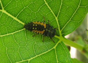 おっ、そして、ココにもナミテントウ(テントウムシ)の幼虫が!