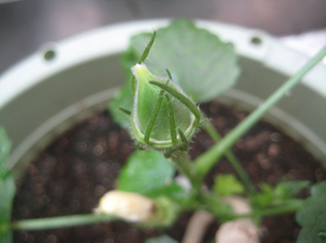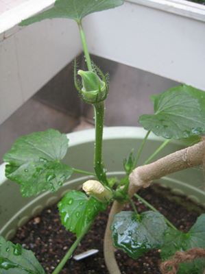 オクラさんは、花を帽子のように付けたのち、
