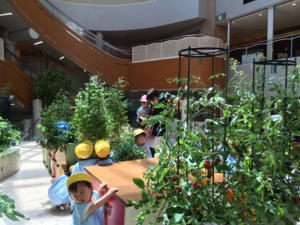 小倉駅前の複合施設 セントシティ10階にある広場『KOKURA natu-garden』は太陽光の入るとっても気持ちのいい空間。ここで野菜を育てよう!と開園して2025年3月で15年になりました!風も吹かず、受粉の為の虫もいない屋内での野菜の栽培は、挫折&苦労の連続でした。