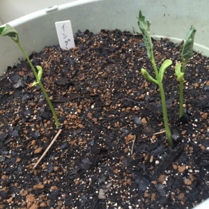 つるなしインゲンの種をまいたら芽がでてました♪
