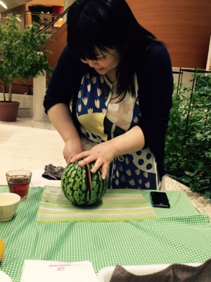上野園芸社のご指導のもと、すくすく育ったスイカをいよいよ収穫して食べることに♪
