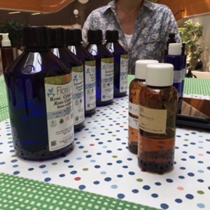 8/4(火)の「アロマとハーブのおはなし」は、ハンドメイドコスメの教室を主宰されている、南孝子さんをお迎えして、日焼け後の肌や、お風呂あがりに冷んやり気持ちいい~癒しの香りの「フェイス&ボディジェル」をつくりました♪