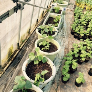 丸オクラ、ゴーヤ、ちびすけきゅうり、ころたんメロン、プリンスメロン、黄瓜、
